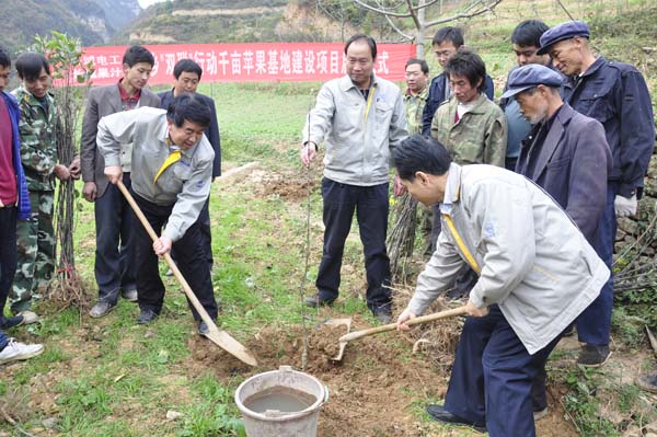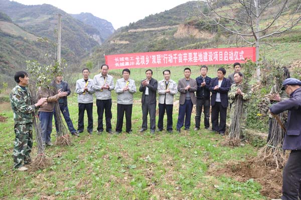 10月23日,長(zhǎng)城電工與隴南市武都區(qū)龍壩鄉(xiāng)政府在龍壩鄉(xiāng)張莊村舉行“千畝蘋果園基地”建設(shè)項(xiàng)目栽植儀式,標(biāo)志著長(zhǎng)城電工“千畝蘋果園基地”項(xiàng)目一期工程300畝栽植果苗工作正式啟動(dòng)。