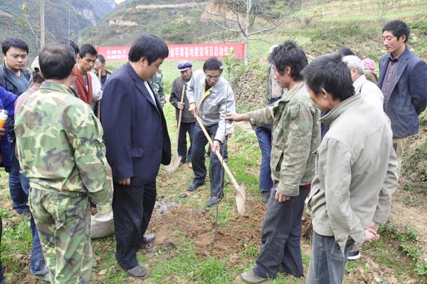 長(zhǎng)城電工副總經(jīng)理毛建光出席栽植儀式并代表長(zhǎng)城電工講了話,對(duì)在“雙聯(lián)”行動(dòng)中長(zhǎng)城電工與龍壩鄉(xiāng)共同建設(shè)“千畝蘋果園基地”建設(shè)項(xiàng)目的重要意義做了進(jìn)一步的闡述,同時(shí)對(duì)當(dāng)期果苗的栽植、后期果園的管理等方面分別提出了意見與建議。