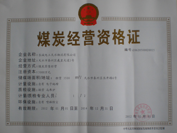 最近省工信委對2011年度取得煤炭經營資格證的企業(yè)組織進行了培訓,并頒發(fā)了《煤炭經營資格證》。長城電工天水物流公司也取得了《煤炭經營資格證》,具備了經營煤炭的資質。