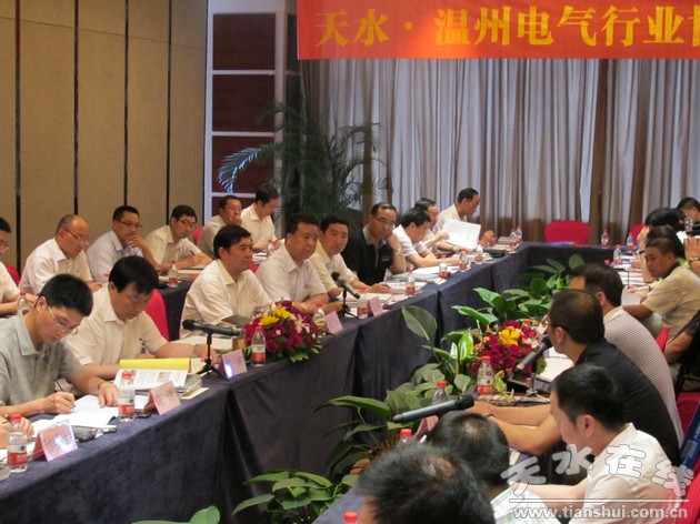 天水市市委常委、政法委書記趙衛(wèi)東,副市長雷鳴,全國民營企業(yè)500強中國人民電器集團董事長、溫州電器行業(yè)協(xié)會會長鄭元豹及溫州部分知名電工電器企業(yè)負責人、電器行業(yè)協(xié)會相關(guān)領(lǐng)導出席了相關(guān)會議,并分別就進一步加強兩地電器行業(yè)協(xié)會的交流合作,推動兩地電工電器企業(yè)優(yōu)勢互補、共同發(fā)展等進行了深入的座談交流。