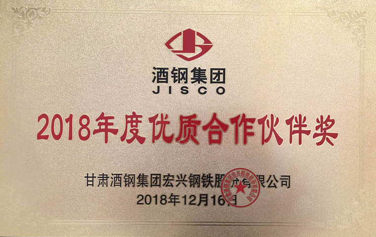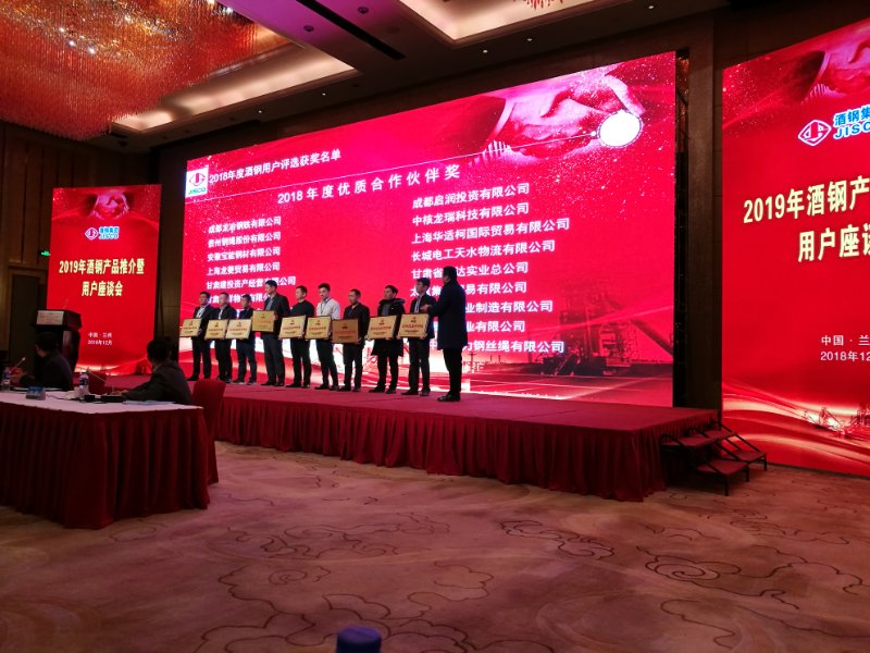 12月13日,酒鋼在蘭州組織召開了“新產(chǎn)品推介暨用戶座談會”,酒鋼股份公司部分領(lǐng)導(dǎo)和來自全國300余家代理商以及用戶代表參加了會議。會上公司獲得酒鋼 “2018年度優(yōu)質(zhì)合作伙伴獎(jiǎng)”。