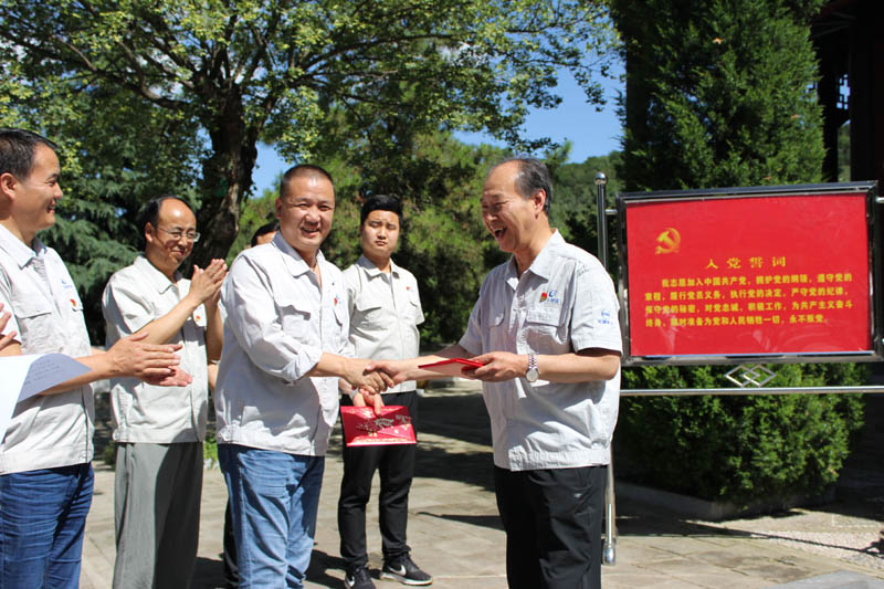 在紀(jì)念館陳列室門前,黨總支副書記文曉云同志宣讀了2019年優(yōu)秀共產(chǎn)黨員和優(yōu)秀黨務(wù)工作者表彰決定,黨總支書記、總經(jīng)理劉志濤同志給獲獎人員頒發(fā)了證書,管理黨支部書記韓婧同志帶領(lǐng)全體黨員重溫了入黨誓詞。
